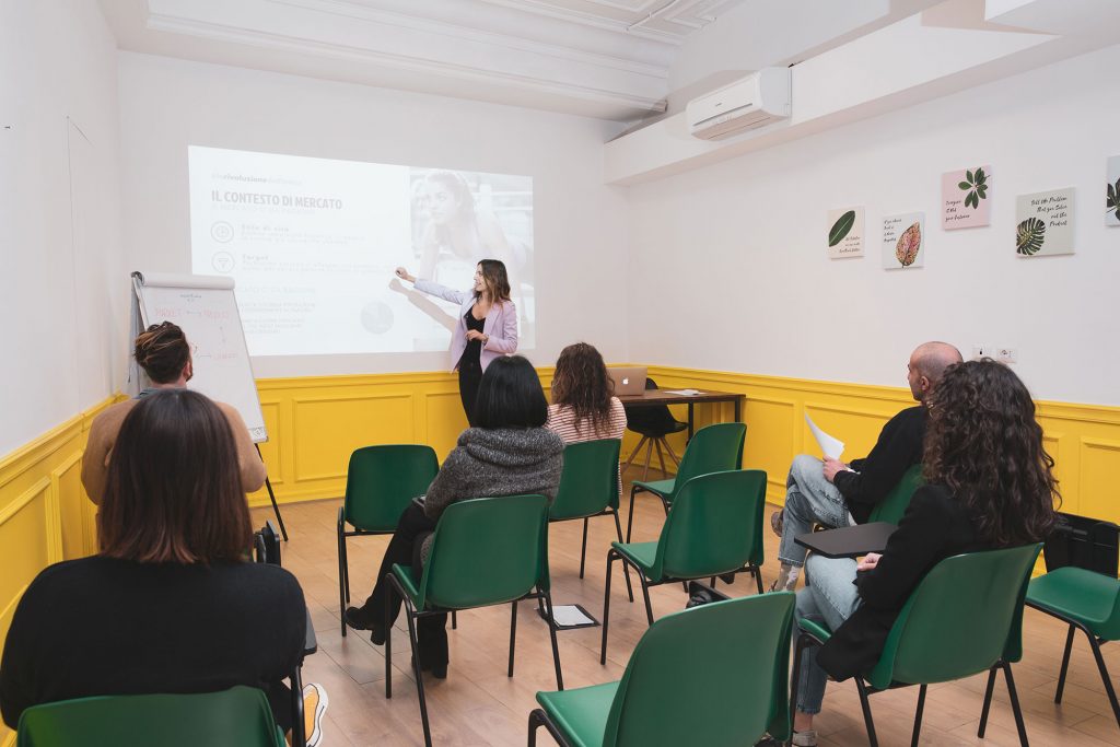 La location è fondamentale. A seconda delle esigenze, le caratteristiche da tenere in considerazione sono di carattere tecnico e strutturale, bisogna capire le esigenze e il format del corso. Se ad esempio parliamo di un format full time, sarà necessario prevedere: coffee break o light lunch. Bisogna inoltre far sì che ci siano momenti di condivisione e opportunità di network.